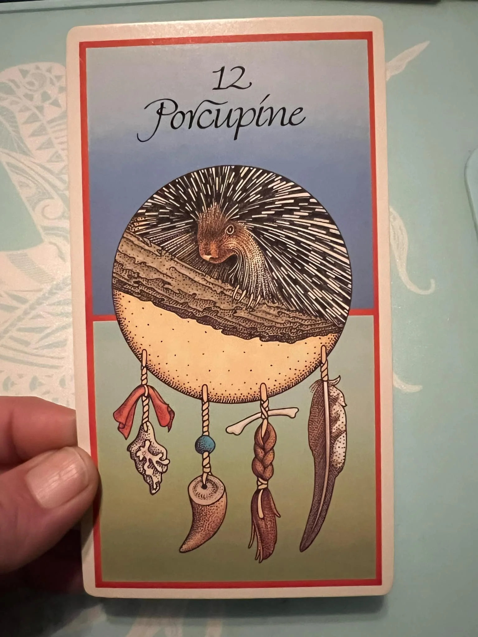 In choosing the Porcupine card, you have given yourself a gentle reminder not to get caught in the chaos of the adult world where fear, greed, and suffering are commonplace. The medicine in this card is that of relief from seriousness and severity. Open your heart to those things that gave you joy as a child. Remember the preciousness of fantasy and imagination, and the making of some game or toy from nothing but scraps.