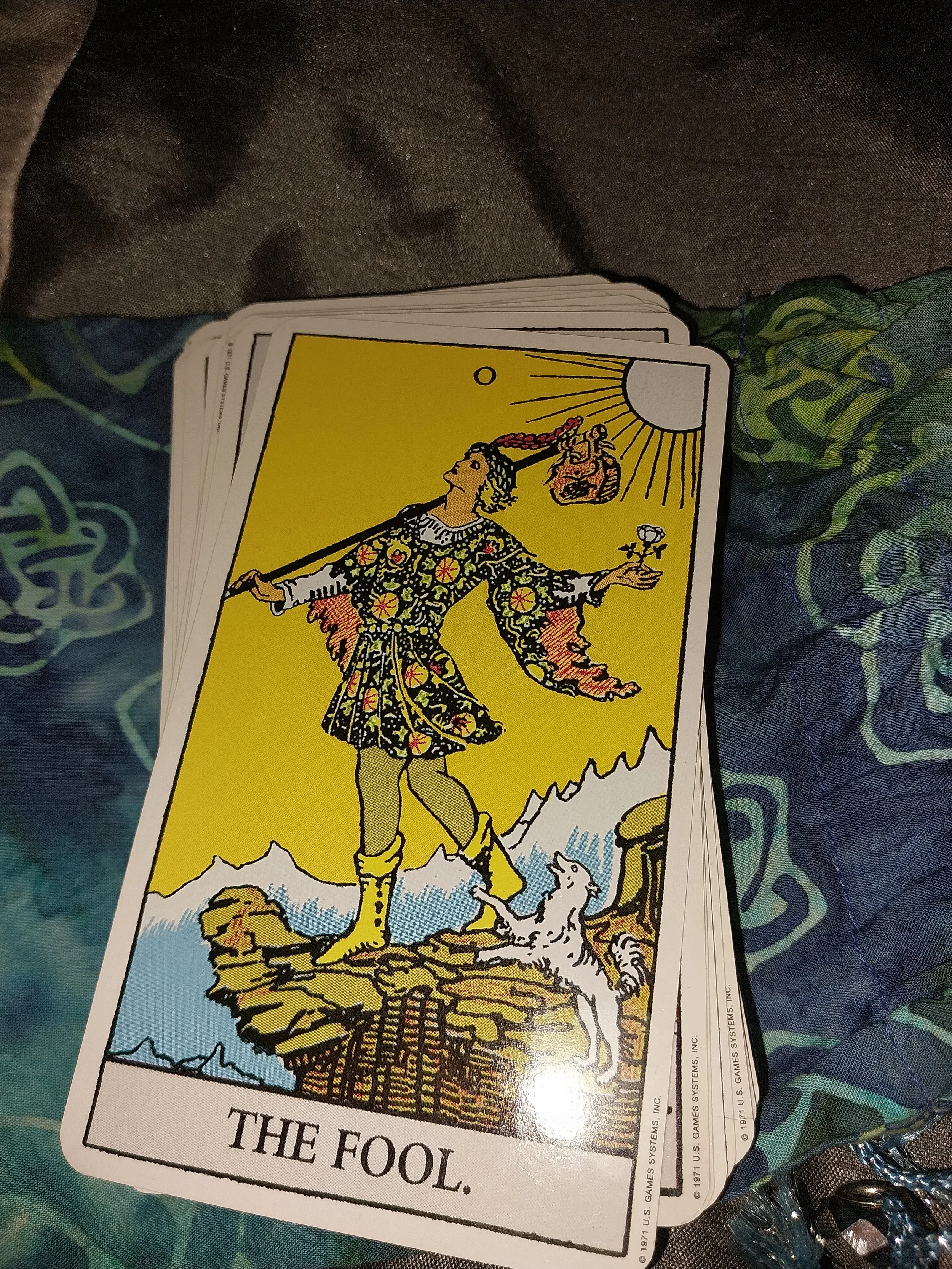 The perfect card for March and the Spring Equinox. New beginnings, new ventures. We have the skills as Witches. We know the rules of the Universe. With this knowlege, we can find a way around any obstacle that may stand in our way as we move through the world. The Fool inspires us to move forward, allowing new experiences to shape us. And in turn, we too will shape the world.