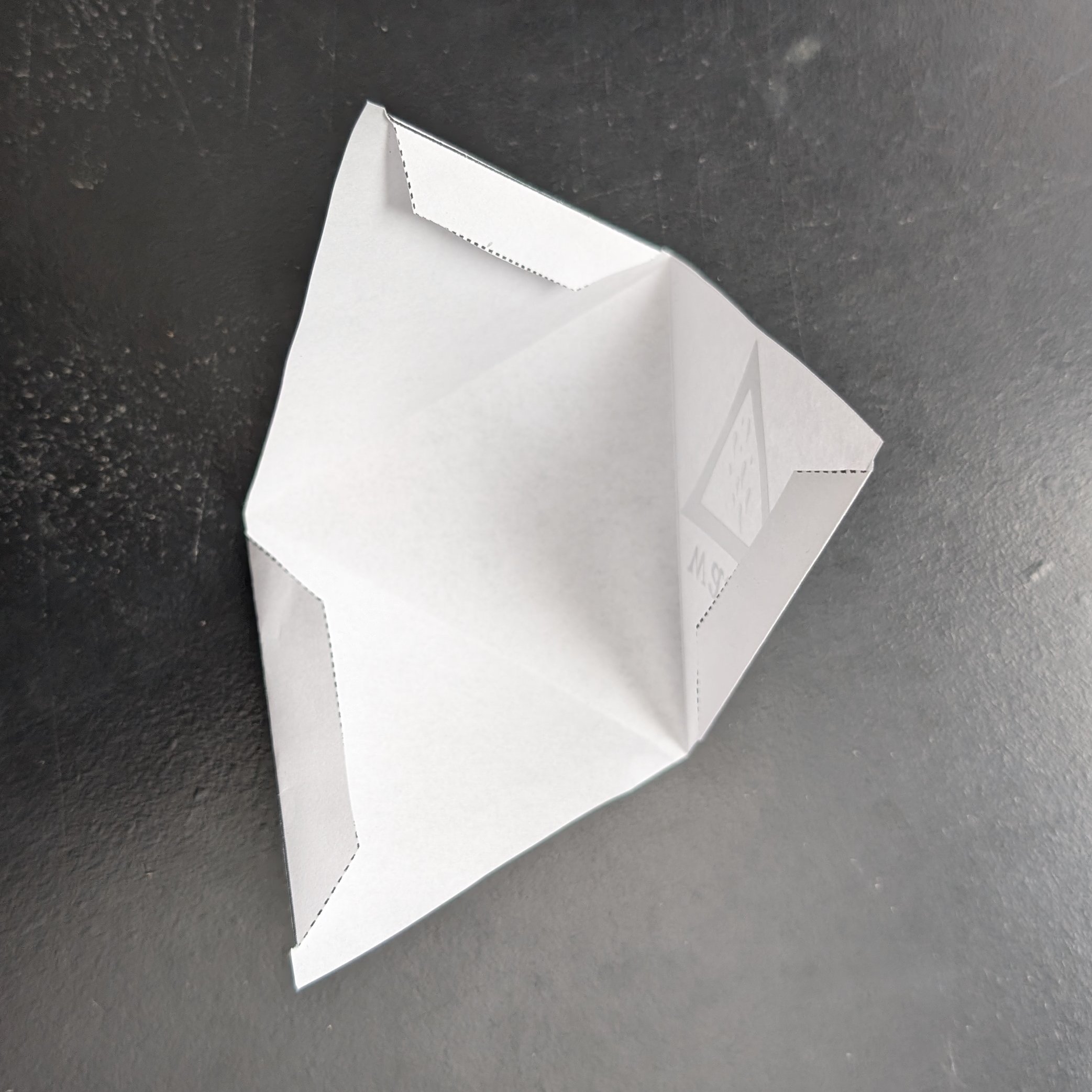 Cut the pyramid, but be sure you include the flaps on the part you KEEP. Fold the flaps inward.